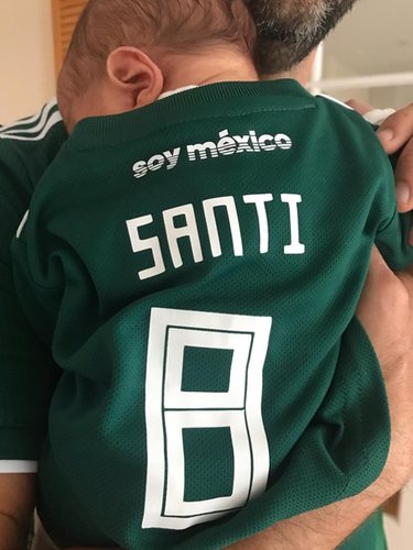 La primera fotografía del pequeño Santiago Enrique / InstagramA través de su cuenta de Instagram enseñó a sus seguidores cómo el pequeño Santiago Enrique ya luce como nadie la camiseta de la Selección Mexicana de fútbol en honor al país de su padre: "¡Mira quién está listo para el juego #México! #World Cup", escribía la actriz estadounidense junto a la fotografía en la que se ve a su hijo de espaldas con la camiseta en la que se lee "SANTI" y el número 8. Por supuesto, el empresario también se aprecia que luce la misma indumentaria.