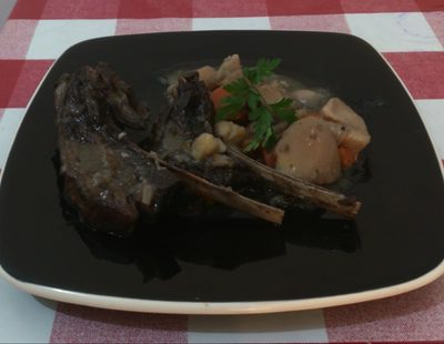 Si queremos llevar todo el estofado a la mesa para servir a nuestros invitados ahí debemos escoger una bandeja que no sea completamente llana, ya que nuestro plato tiene una salsa muy sabrosa al vino tinto que deberá servirse por encima de las costillas. Así pues, una vez tengamos todo el contenido de la olla en la bandeja la llevaremos a la mesa y la serviremos en platos hondos.