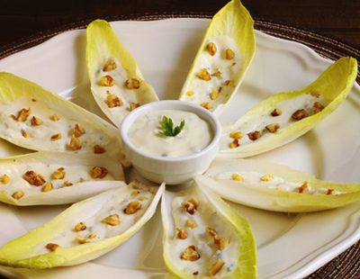 Endivias con roquefort adornadas con nuecesEmplatar y presentación