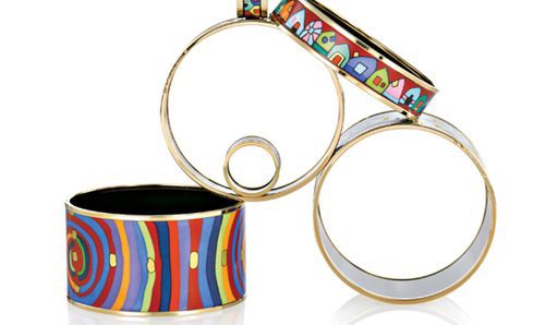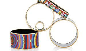 Colgante, pendientes, anillo y pulsera de FreywilleInspirados en las pinturas de Gustav Klimt, los diseñadores de Freywille han transformado la emocionante obra de arte en joyas de 18 quilates y artísticos diseños de esmalte.