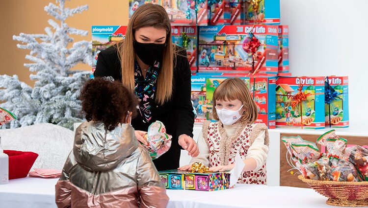 Gabriella de Mónaco da regalos a una niña en presencia de Camille Gottlieb en la entrega de regalos navideños 2021Por su parte, Camille Gottlieb estuvo más pendiente de la pequeña Gabriella, que se han mostrado muy cómplices, intercambiando algunos secretos y con una actitud cariñosa. Lo cierto es que esta representación de la familia Grimaldi no ha estado sola, ya que les ha acompañado Papá Noel, quien les ha ayudado a repartir algunos de los regalos a los niños monegascos.