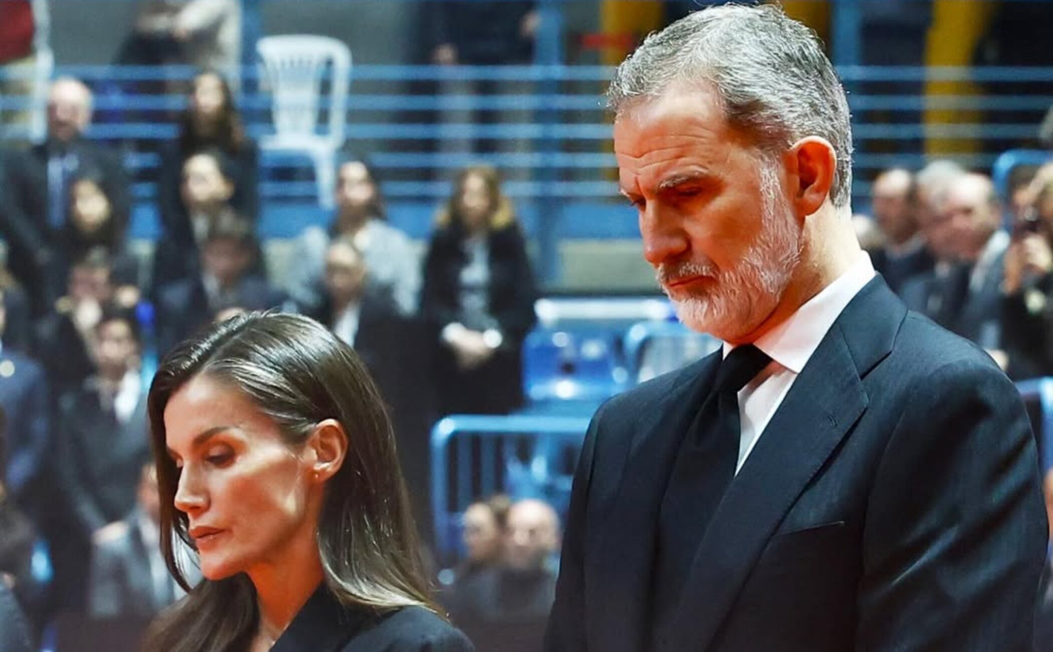 Los monarcas han llegado al Palacio de Deportes Carolina Marín en helicóptero, bajo un cielo gris y lluvioso que acompañaba el clima de dolor colectivo. Vestidos de riguroso luto y con gesto serio, han sido recibidos entre aplausos y vítores de "viva el Rey" y "viva la Reina". Un retraso en el vehículo que debía trasladarlos desde el helipuerto ha provocado que entraran al recinto unos minutos después de lo previsto, justo después del minuto de silencio dedicado a las víctimas.