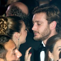 Pierre Casiraghi y su mujer Beatrice Borromeo reaparecían en la vida pública después de haber sido padres. Ambos estaban radiantes de felicidad y no podían dejar de hacerse arrumacos en público. Su posado junto a la familia fue de lo más tierno y, en la fiesta posterior, no pararon de dedicarse miradas cómplices y multitud de muestras de cariño. Están encantados el uno con el otro. Beatrice Borromeo iba de lo más guapa con un traje en azul noche con pedrería y moño tirante.