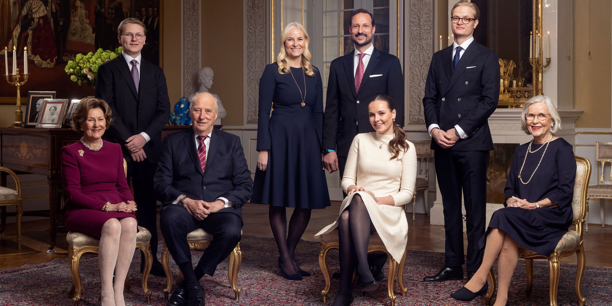 No faltaron sus padres y sus hermanos. Los Príncipes Haakon y Mette-Marit, ambos muy sonrientes, posaron de pie detrás de su hija. Por su parte, el Príncipe Sverre Magnus, que ya sorprendió en el posado navideño 2021 de la Familia Real Noruega por lo que ha cambiado, se colocó detrás de sus abuelos. Al otro lado, cerca del Príncipe Heredero y de su abuela materna, estaba Marius Borg, hermano mayor de la Princesa Ingrid Alexandra. El primogénito de Mette-Marit de Noruega no pertenece a la Casa Real Noruega y no suele estar presente en estos posados, pero sí lo hace cuando el acontecimiento tiene que ver con sus hermanos, como ha sido este caso.