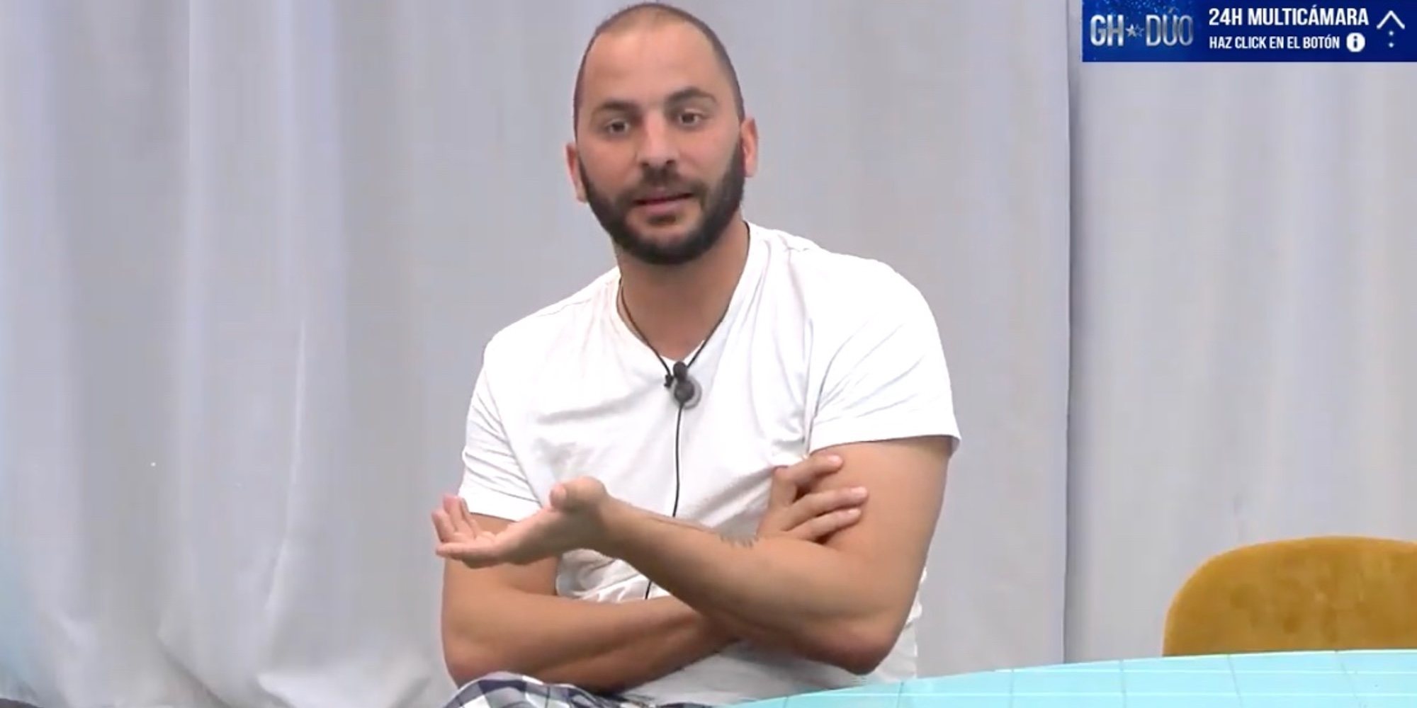 Antonio Tejado explicando la situación | Foto: Canal 24 horas 'GH DÚO'De la desolación ha ido evolucionando hacia el enfado, porque no podía creerse que María Jesús Ruiz hubiera insinuado que la había utilizado para darle celos a Candela Acevedo: "A mí no me vayas a pisar para quedarte aquí". "Ayer por la tarde estaba en la cama que me tiró del pie, ayer no la estaba utilizando, la estaba utilizando hoy", decía Tejado. A los que sus compañeros apuntaban que había sucedido después de ver el 60% de las nominaciones.